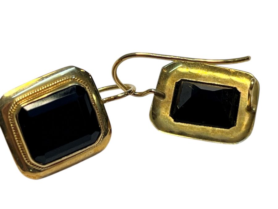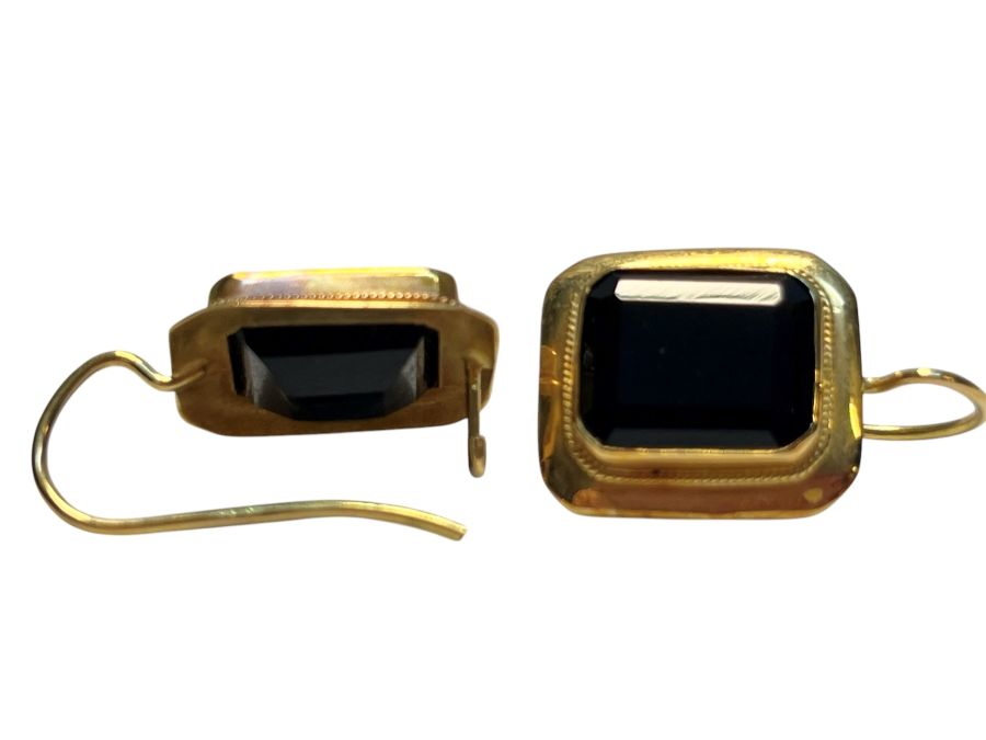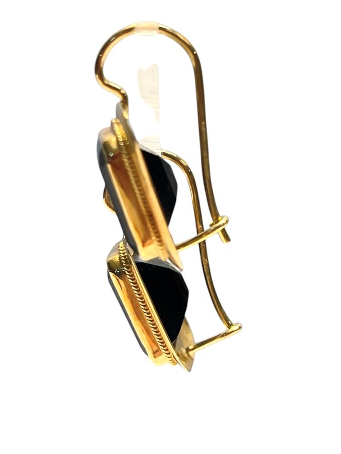 Orecchini in oro e onice in oro giallo, ciascuno incastonato con lastra di...