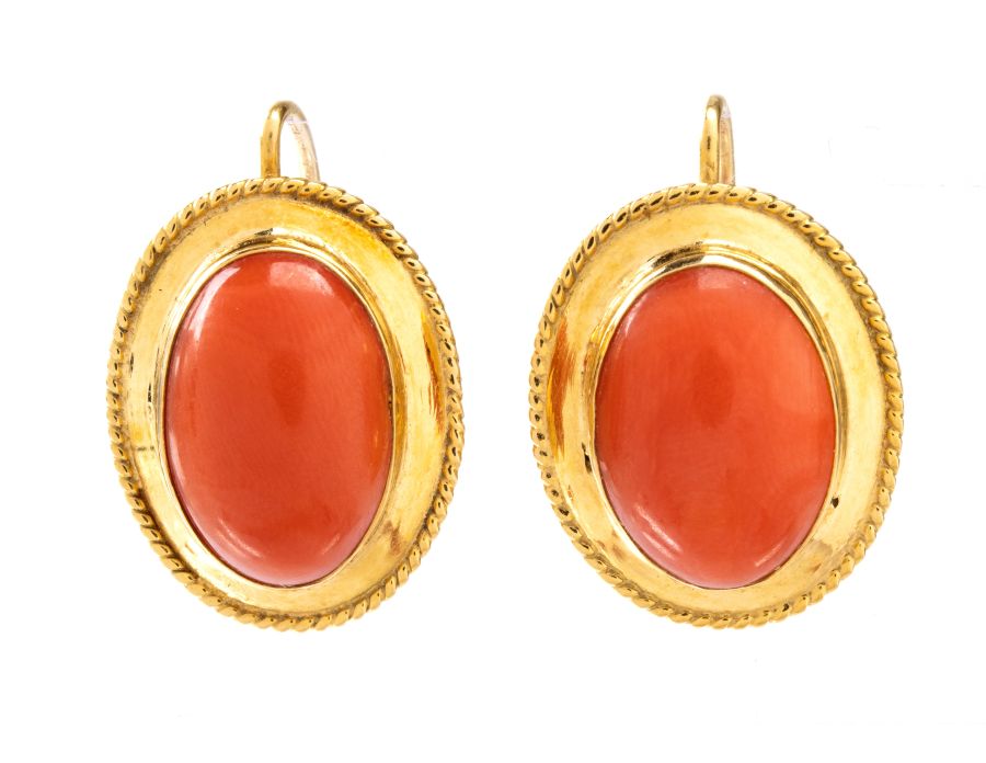 Orecchini in oro con corallo Mediterraneo in oro giallo 18k, incastonato con...