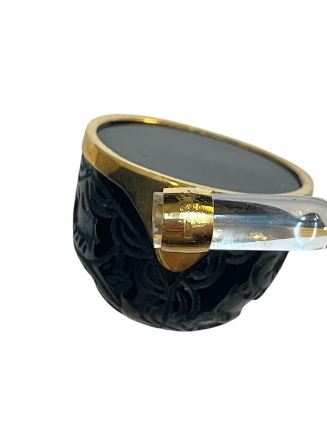 di forma sferica, incisa con motivi floreali, montatura in oro giallo.