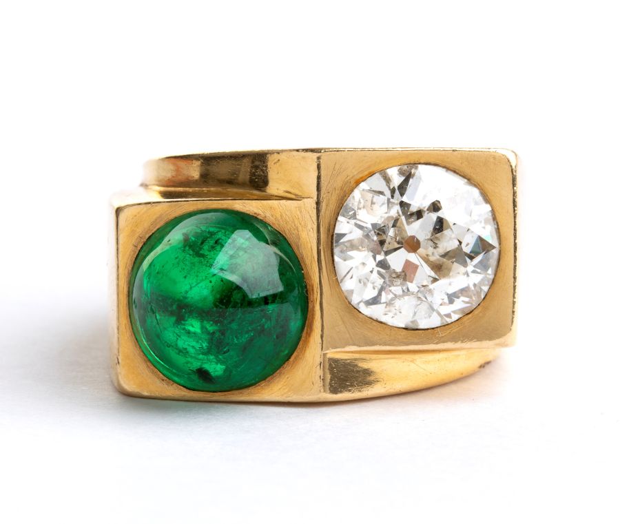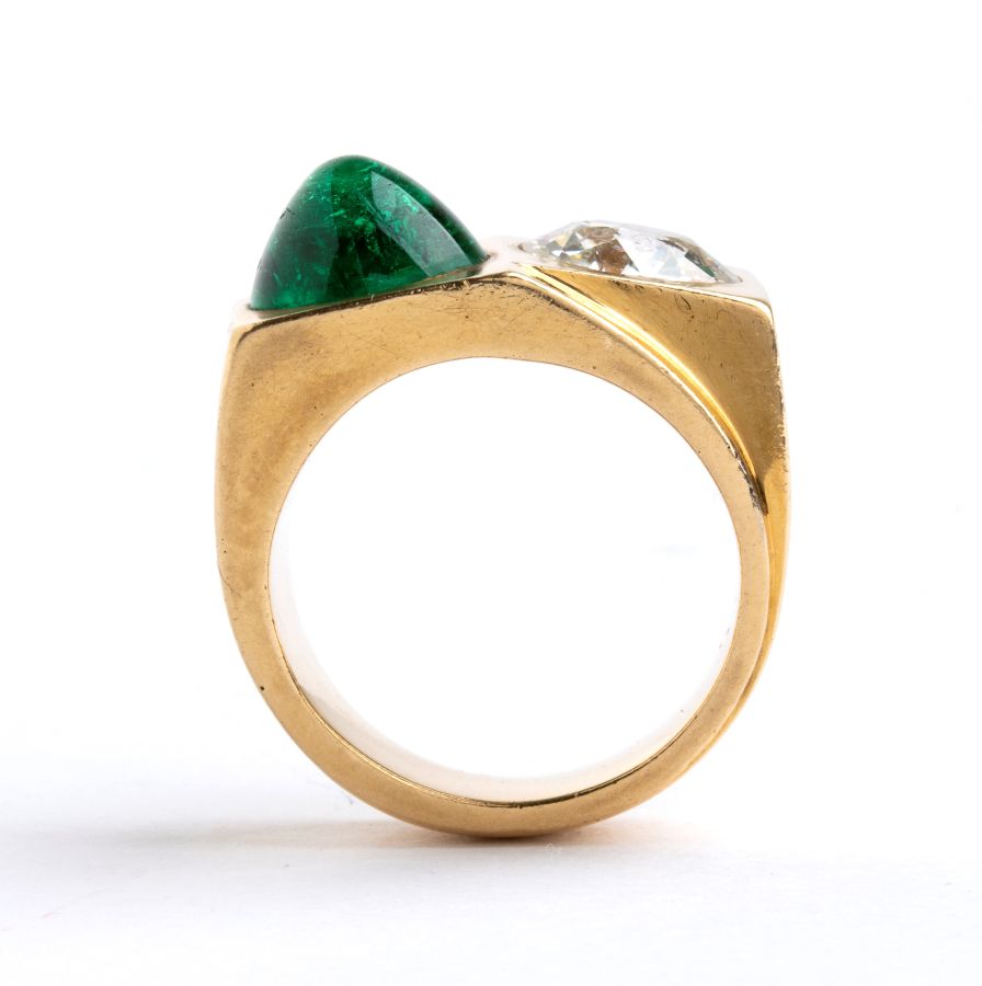 Lot 181 | Anello in oro con diamante e smeraldo Anni '40 appartenuto alla cantante...