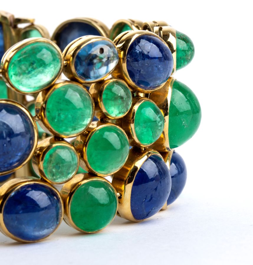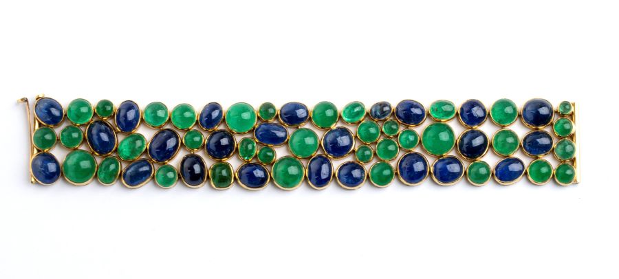 Bracciale in oro con smeraldi e zaffiri Francia, anni '50 Appartenuto alla...