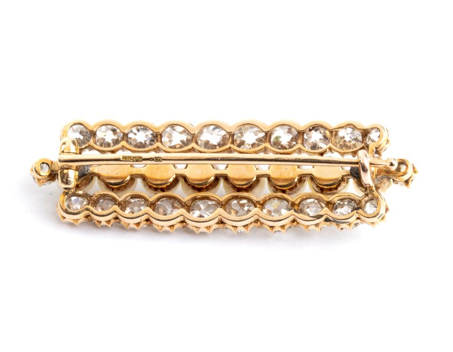 Lot 184 | Spilla con diamanti e perle Anni '30 in oro giallo 14k, di forma...