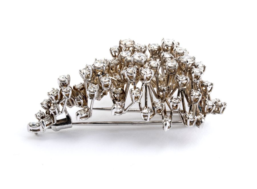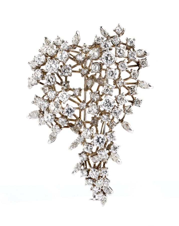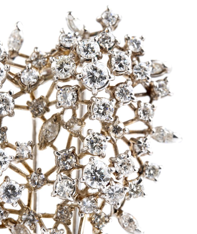 in oro bianco, raffigurante un tralcio fiorito punteggiato da diamanti.