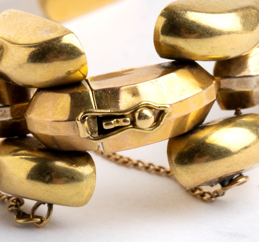 Bracciale in oro Anni '40 modello tank, in oro giallo, bianco e rosa 18k....