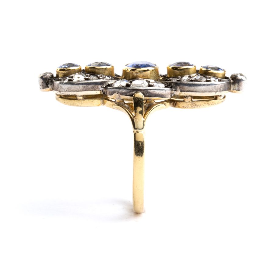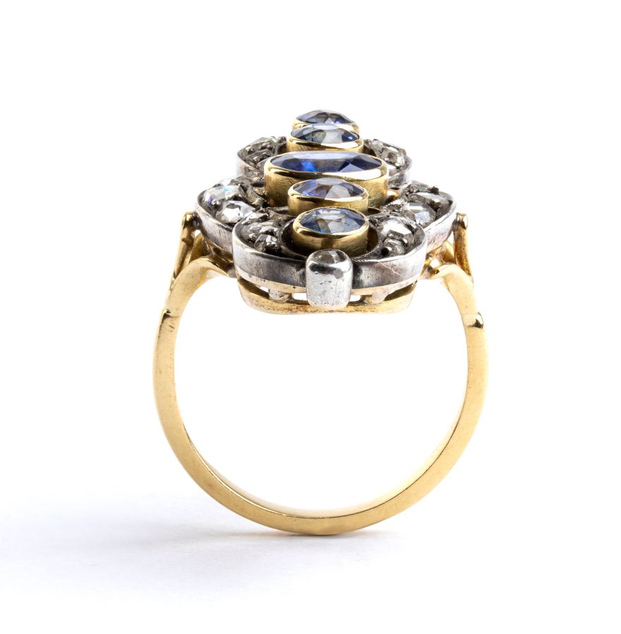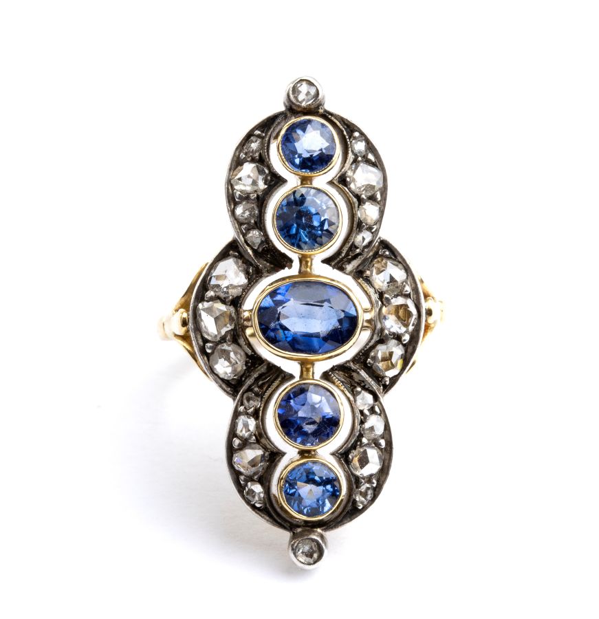 Anello in oro, argento, diamanti e zaffiri fine XIX secolo
