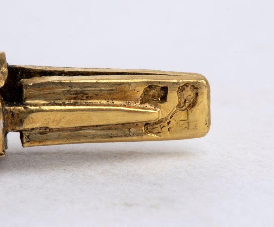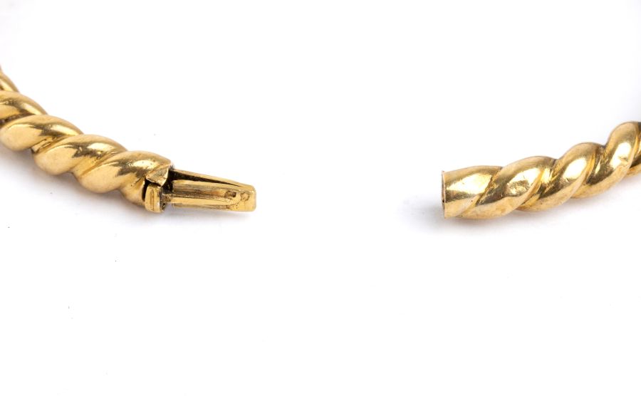 Bracciale in oro con pendente in oro giallo 18k, a cerchio rigido con motivo...