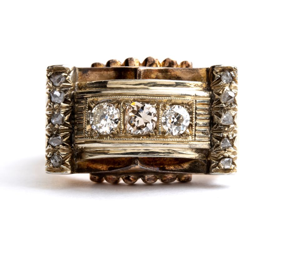 Anello a fascia in oro con diamanti Anni '40