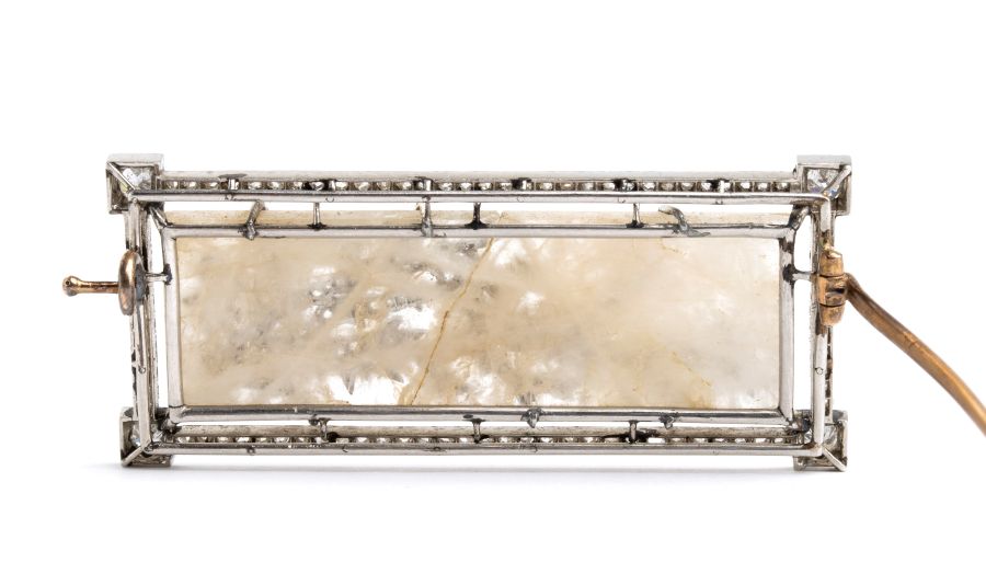 Spilla in platino con diamanti e cristallo di rocca Anni '30