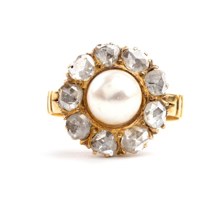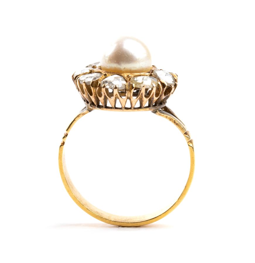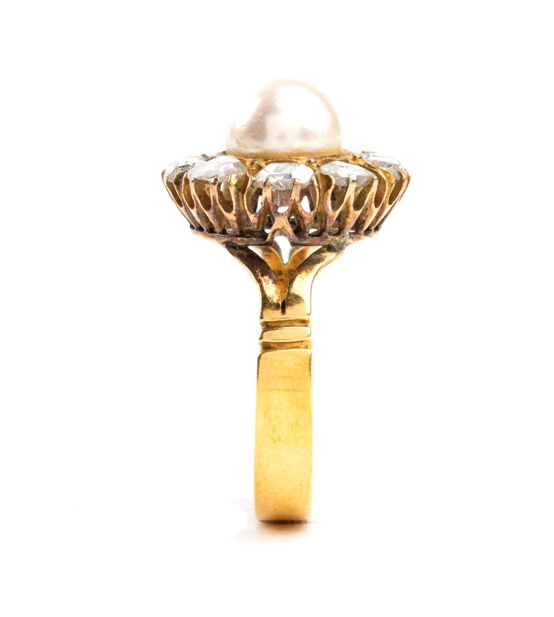 Anello in oro con diamanti e perla centrale Italia, inizio XX secolo