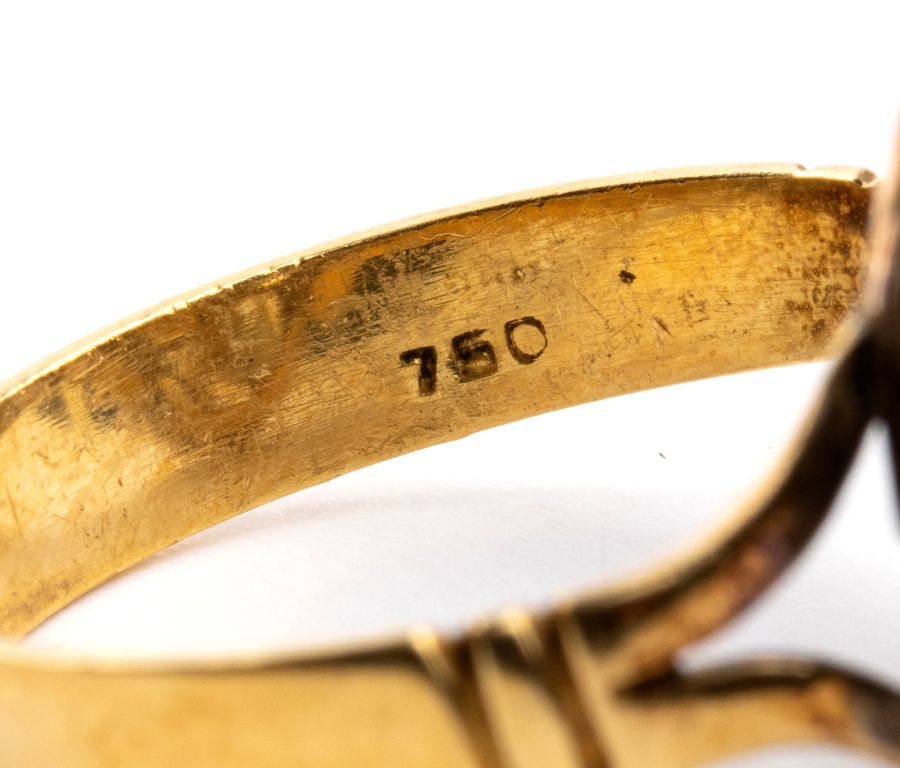 Anello in oro con diamanti e perla centrale Italia, inizio XX secolo motivo a...