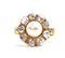 motivo a margherita in oro giallo 18k, con perla coltivata d'acqua salata tra cornice di diamanti taglio a rosa.