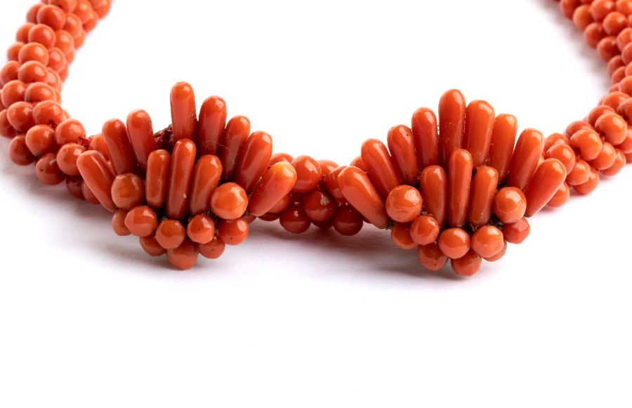 Parure composta da una collana ed un paio di orecchini in corallo Mediterraneo