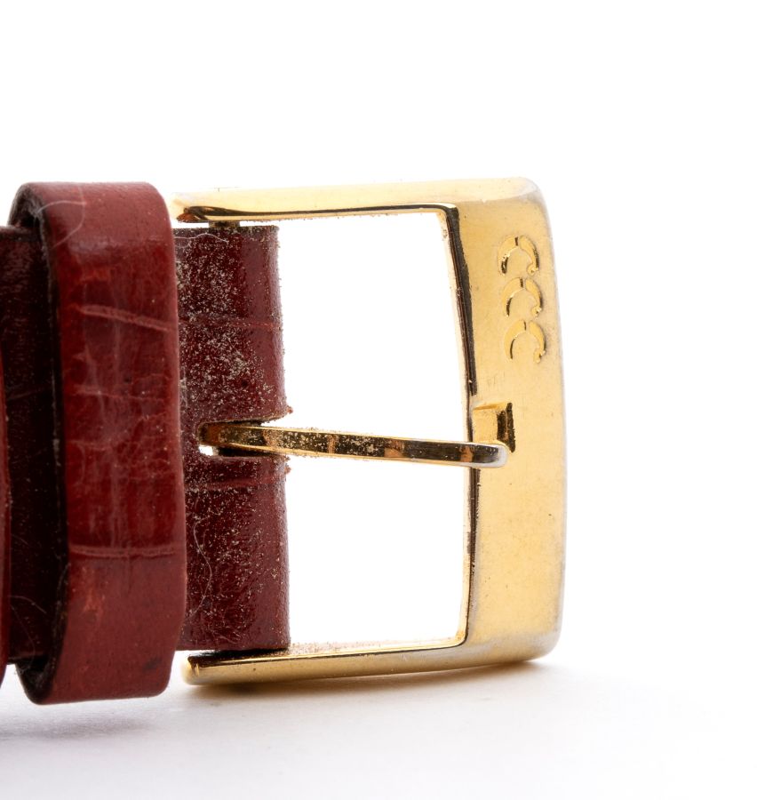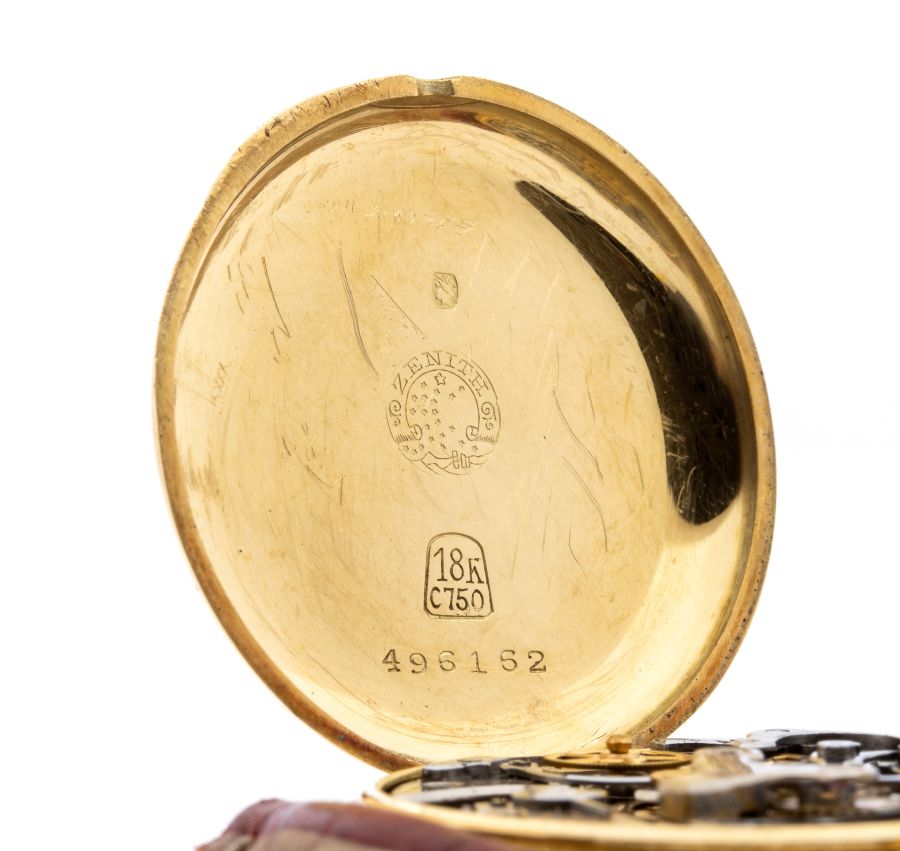 Peso lordo complessivo: 38,8 gr. Peso lordo complessivo: 38,8 gr. cassa in oro 18k con fondello e lunetta incernierata sul castello della cassa, quadrante in ceramica con scala tachimetrica. Movimento cronografico meccanico a carica manuale con attivazione della conografia mediante monopulsante inserito nella corona di carica.