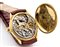 Peso lordo complessivo: 38,8 gr. Peso lordo complessivo: 38,8 gr. cassa in oro 18k con fondello e lunetta incernierata sul castello della cassa, quadrante in ceramica con scala tachimetrica. Movimento cronografico meccanico a carica manuale con attivazione della conografia mediante monopulsante inserito nella corona di carica.