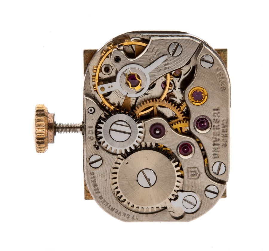 UNIVERSAL GENÈVE Orologio Lady in oro Anni '50 - '60 di forma quadrata, cassa...