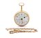 cassa e catena in oro, parti in metallo, quadrante bianco con numeri arabi. Movimento a Serpentina. Calendario e ripetizioni alle ore e ai quarti d'ora.