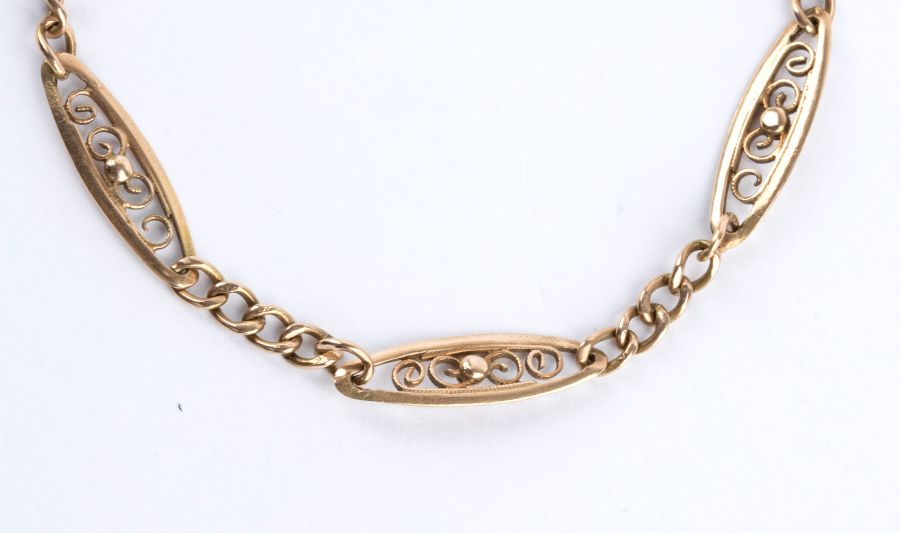Catena per orologio in oro inizio XX secolo a forma di rombi traforati, con...
