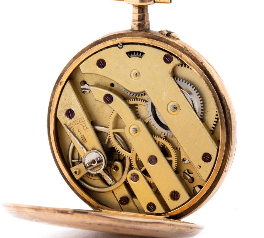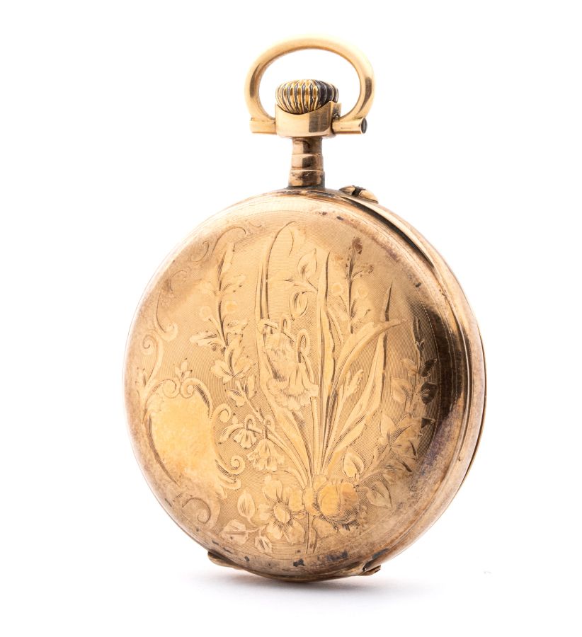 Orologio da tasca in oro inizio XX secolo cassa in oro incisa con motivi...
