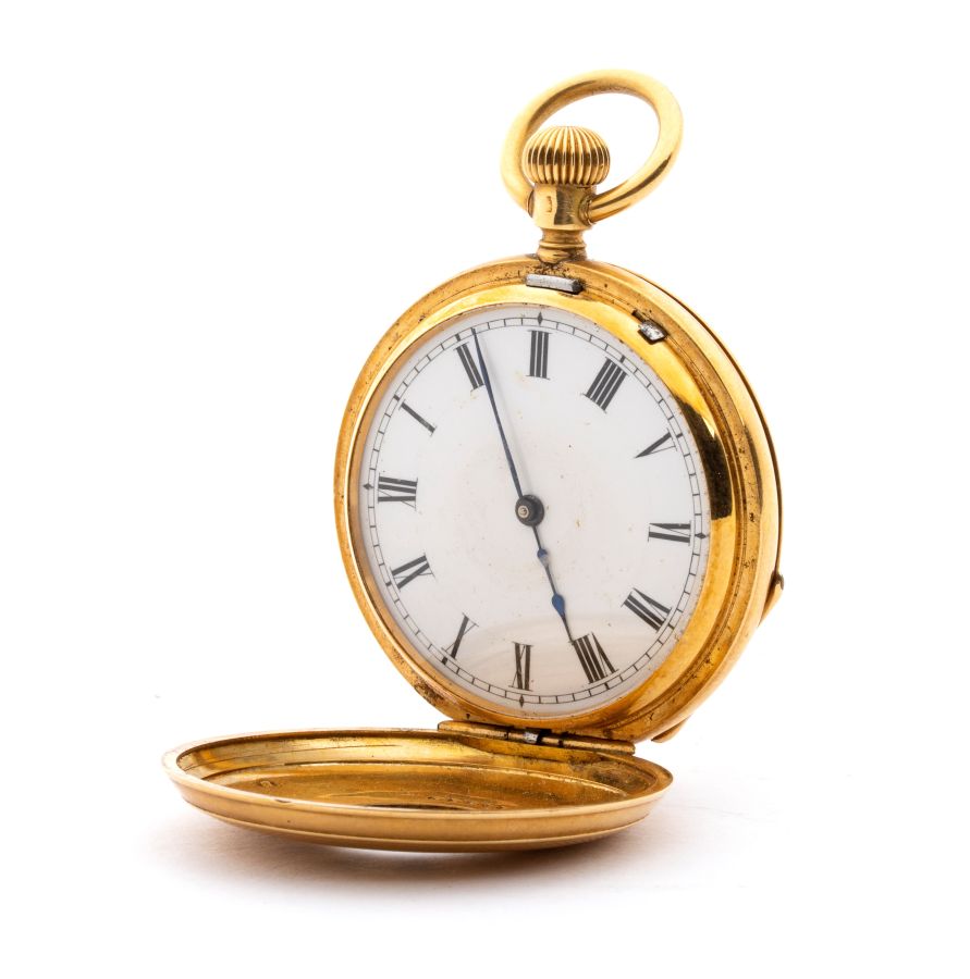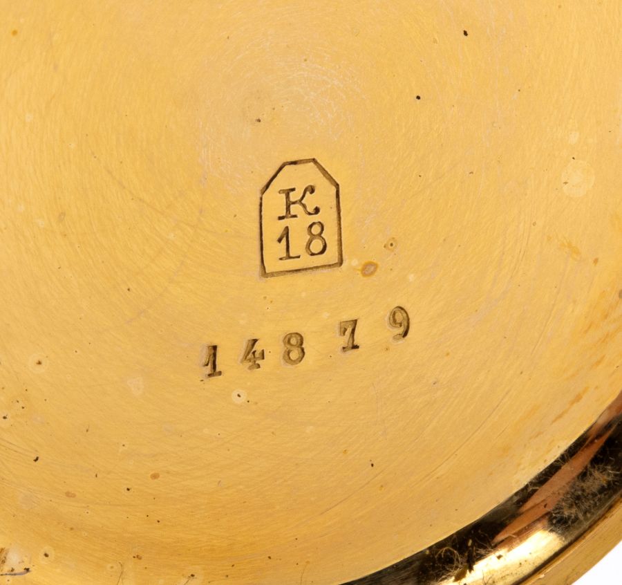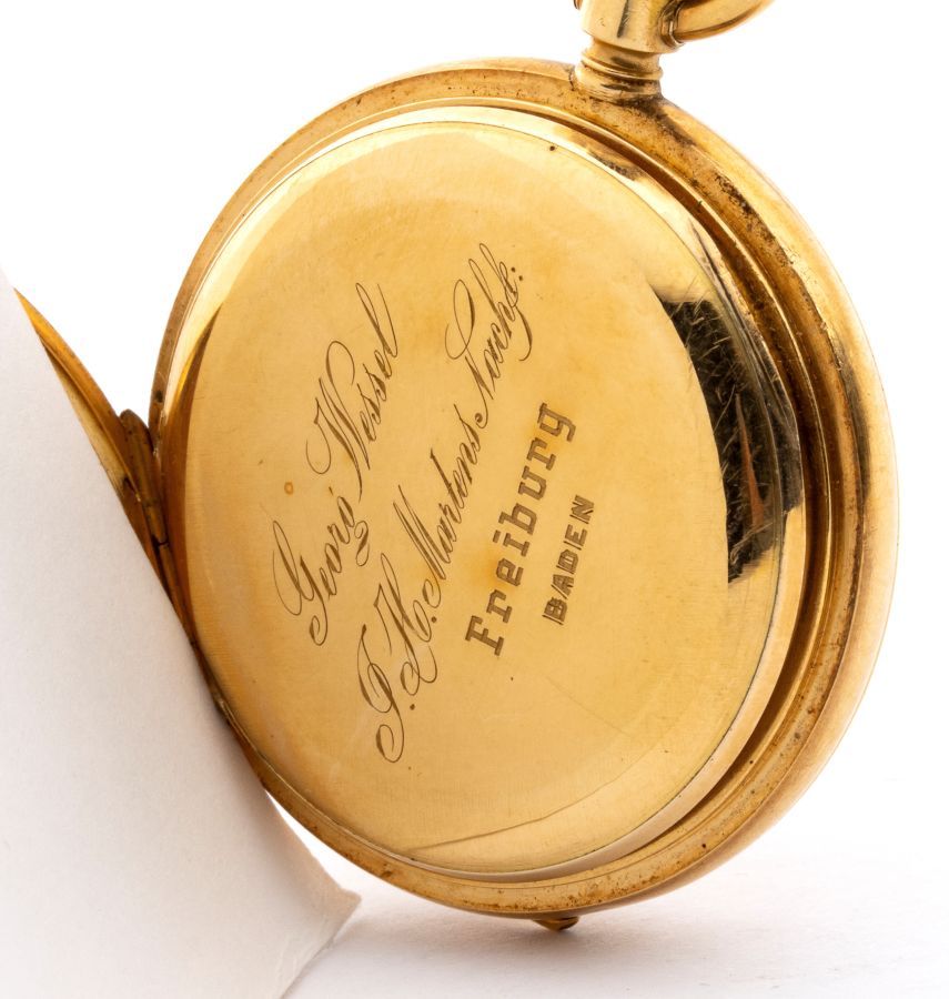 con tripla cassa in oro 18k, quadrante con indici romani. Movimento meccanico manuale con scappamento ad ancora.