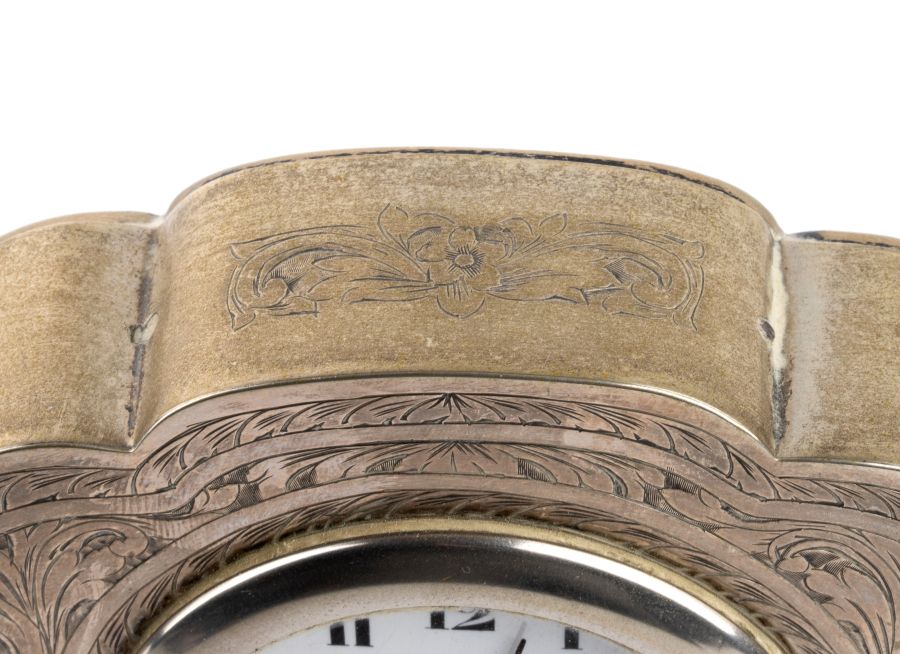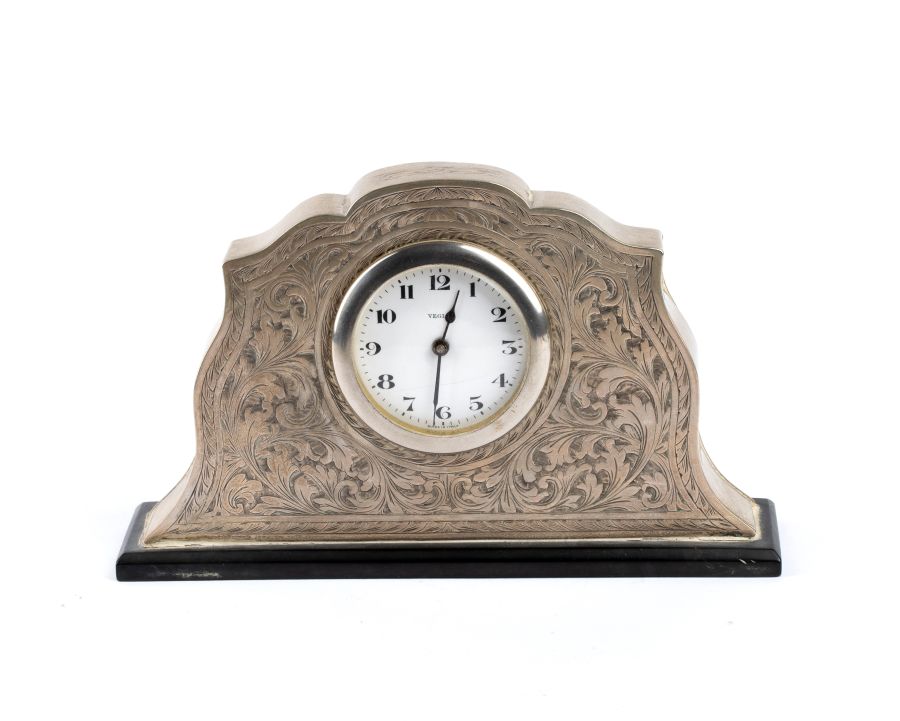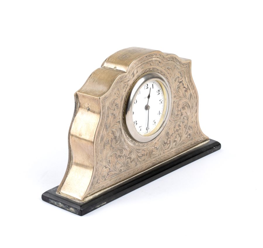 Orologio da tavolo italiano in argento XX secolo Altezza x larghezza x...