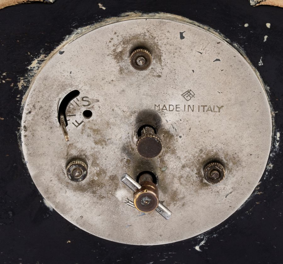 Altezza x larghezza x profondità: 12 x 20 x 4,5 cm. Peso lordo complessivo: 488 gr circa. Altezza x larghezza x profondità: 12 x 20 x 4,5 cm. Peso lordo complessivo: 488 gr circa. di forma sagomata, decorato con incisioni a motivi vegetali sul fronte, con chiave di carica sul retro.
