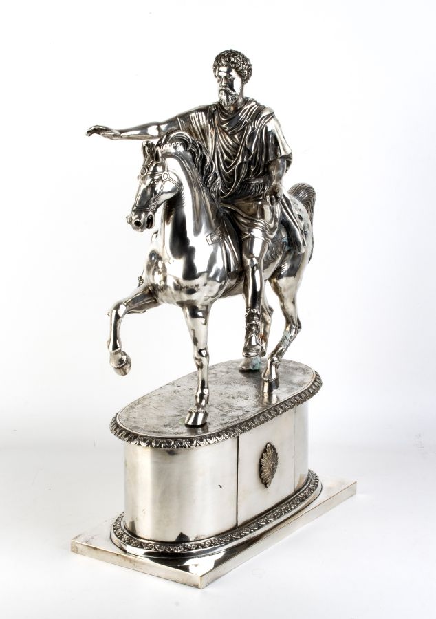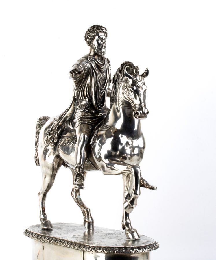 Scultura in argento raffigurante la statua equestre di Marco Aurelio Roma, metà XX secolo