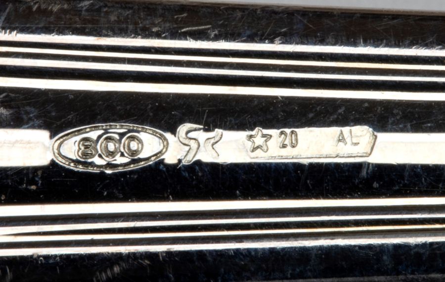 Argento 800/1000, punzonate "800 - 20 AL", argentiere Ricci e Clementi Alessandria.