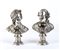 Peso totale: 1029,5 gr. Peso totale: 1029,5 gr. in argento realizzati a fusione raffiguranti un uomo e una donna in abiti d'epoca. Entrambi poggiano su una base circolare decorata con motivi fogliati e floreali. L’uomo è rappresentato con una giacca dalle linee ricercate e un fiocco al collo, segno distintivo dell’eleganza del tempo. La donna indossa un copricapo finemente modellato.