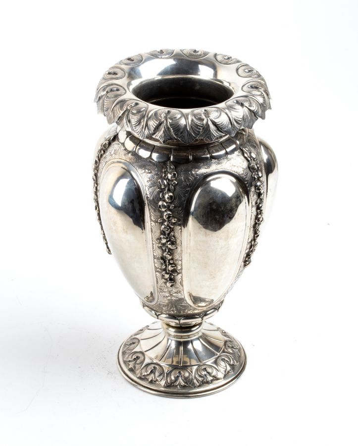 Vaso italiano in argento Milano, XX secolo Altezza x diametro: 34 x 16 cm....