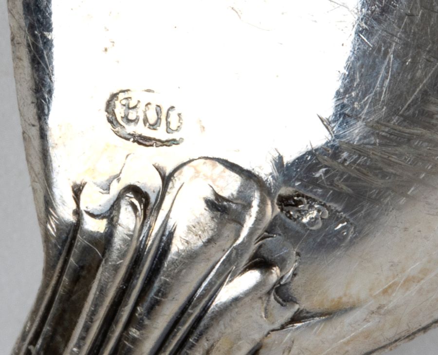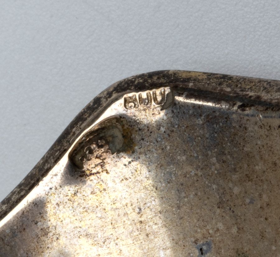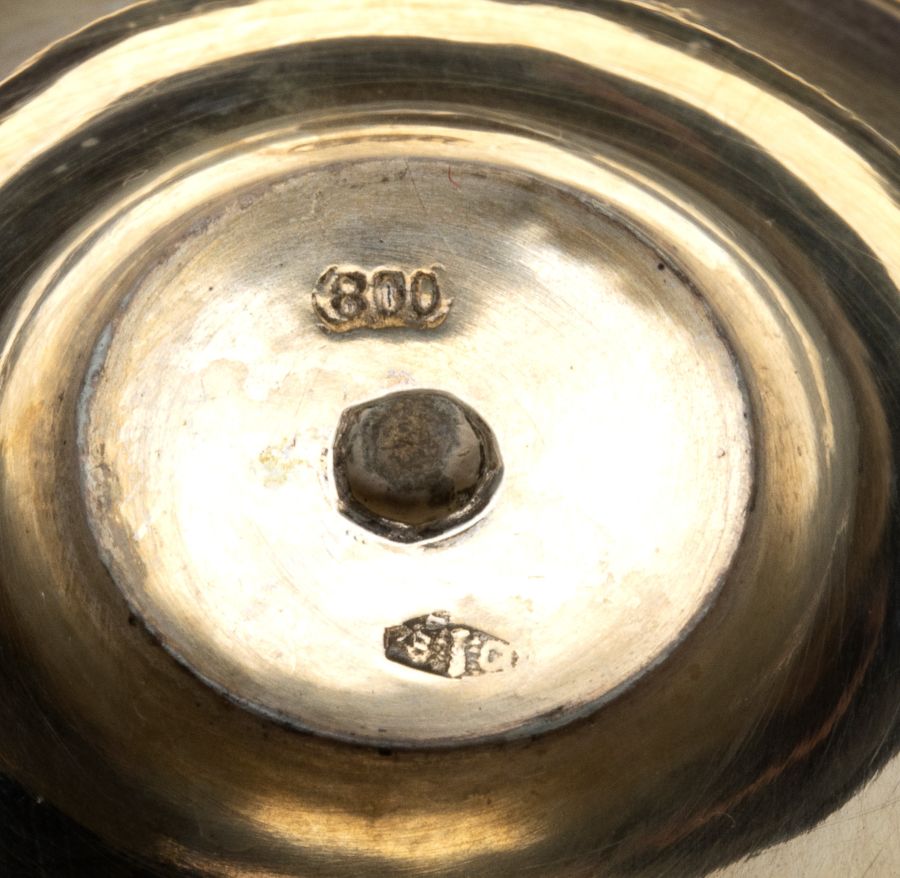 6) coppia di piatti ovali: altezza x larghezza: 12,5 x 8,5 cm. Peso complessivo: 210 gr.