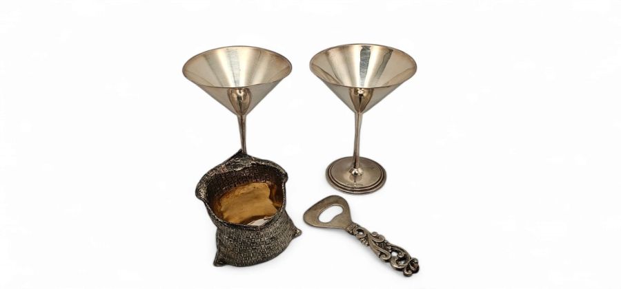 1) dimensioni calici: 14 x 9,5 x 9,5 cm. Argento 800/1000, punzonati "800 - ST - 39 PA".