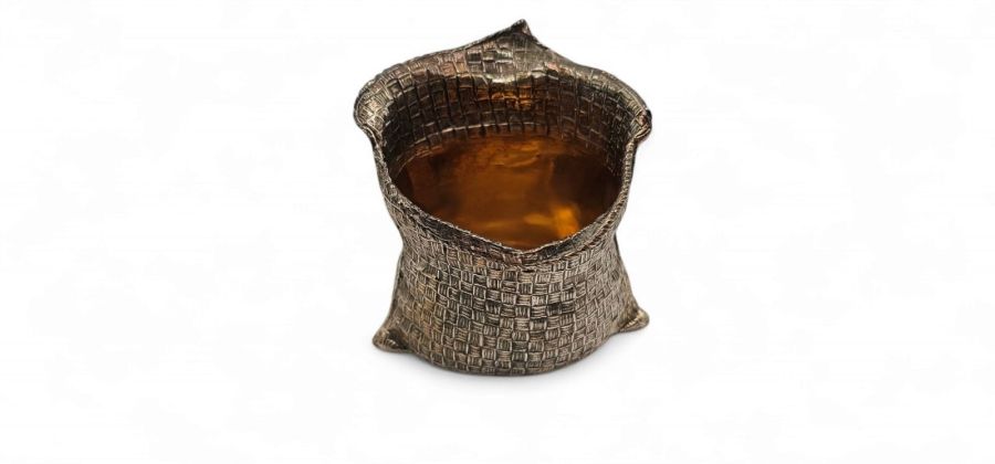 3) dimensioni cestino: 7,7 x 7,4 x 7,5 cm. Argento 800/1000, punzonato "800 - FASANO - 28 MI".
