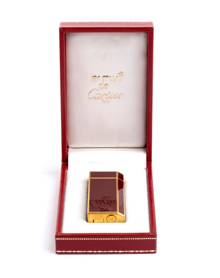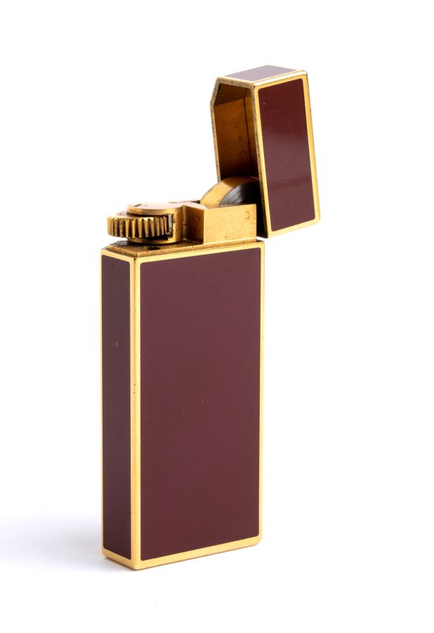 CARTIER Accendino Anni '80 corpo in smalto rosso, di forma squadrata. Seriale...