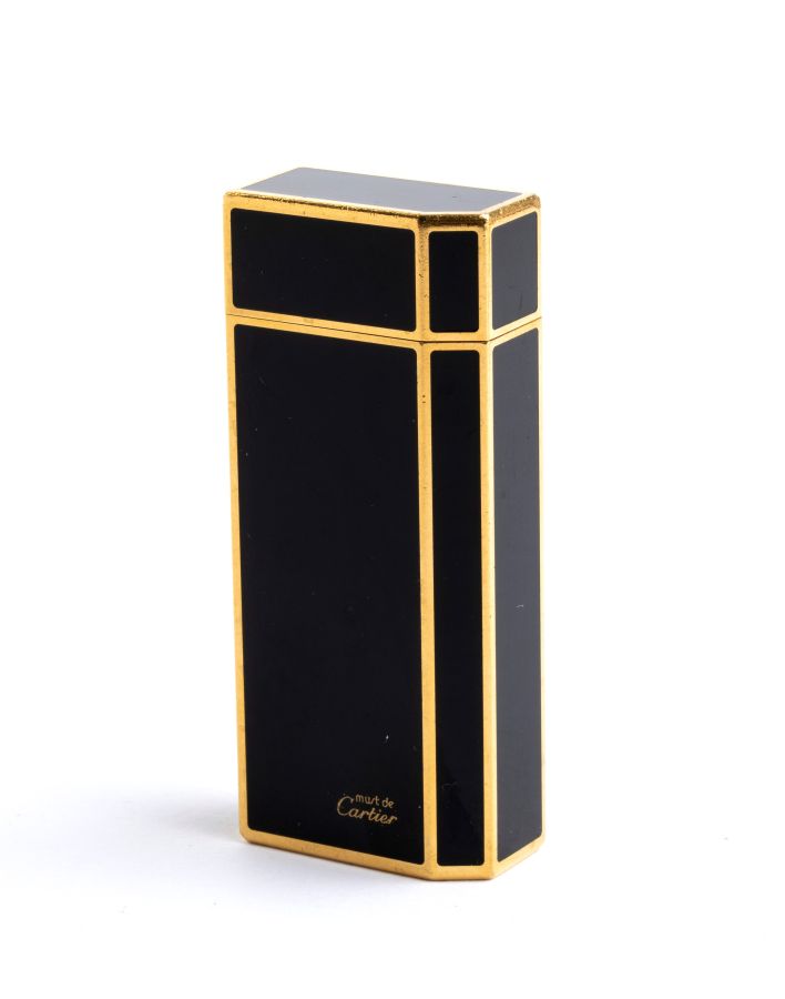 CARTIER Accendino Anni '80 corpo in smalto nero, di forma squadrata. Seriale...