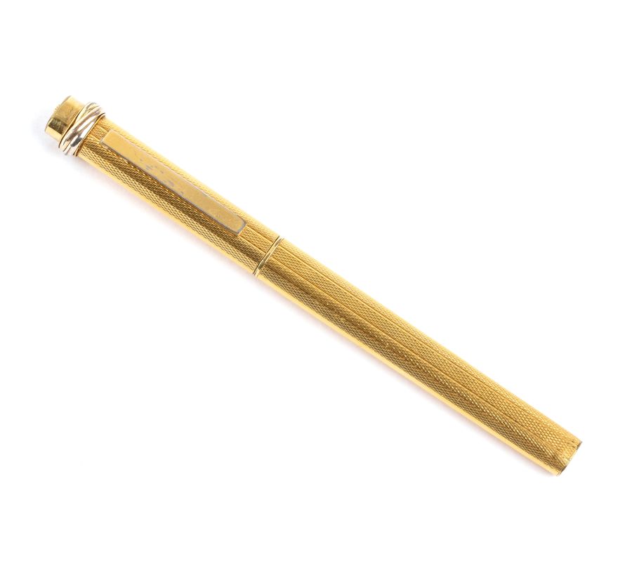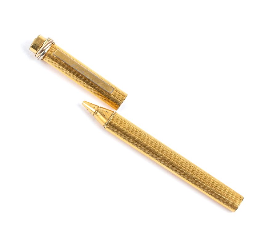 CARTIER Penna a sfera corpo e cappuccio placcati in oro; premendo la parte...