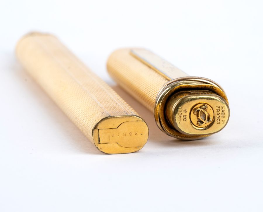 corpo e cappuccio placcati in oro; premendo la parte superiore del cappuccio la clip si apre alla larghezza desiderata, rilasciando la pressione la clip ritorna nella sua posizione originale. Numero di serie 22837.
