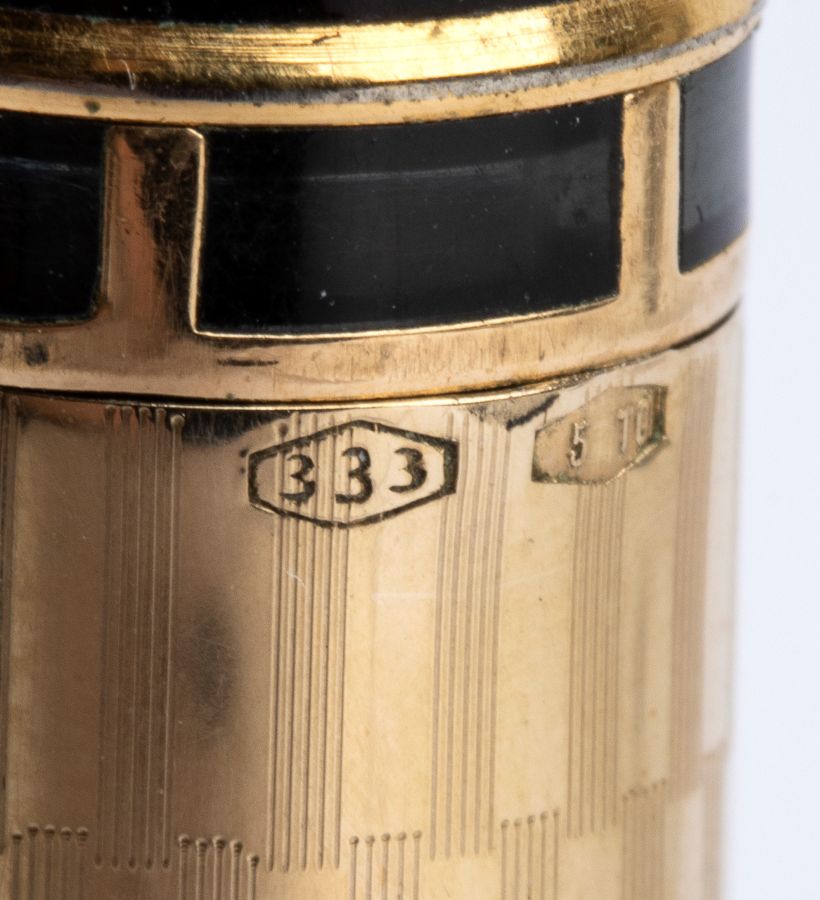 corpo e cappuccio in oro, sistema di caricamento a stantuffo.