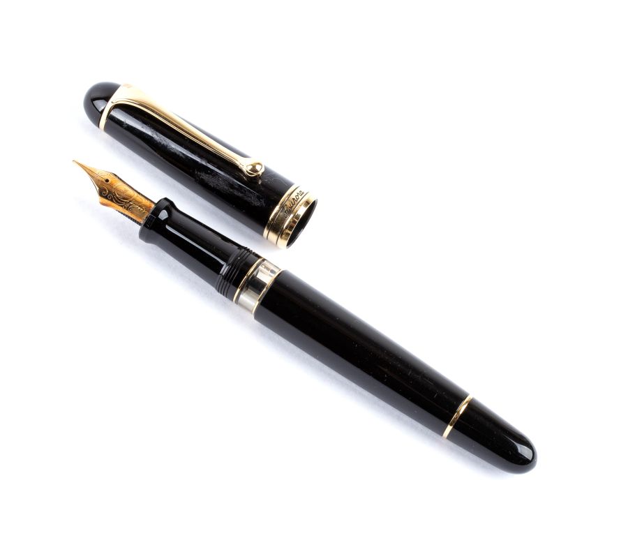 AURORA Penna stilografica corpo e cappuccio in resina nera, pennino in oro...