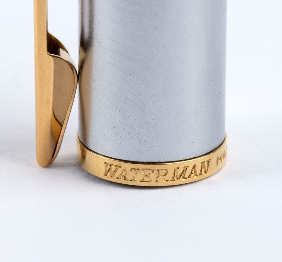 WATERMAN 502 Penna a sfera Anni '80 corpo grigio laminato e nero, firma sul...