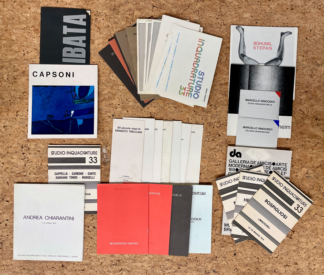 Lotto unico di numerosi cataloghi e pieghevoli riccamente illustrati editi dalla Galleria Inquadrature, Firenze