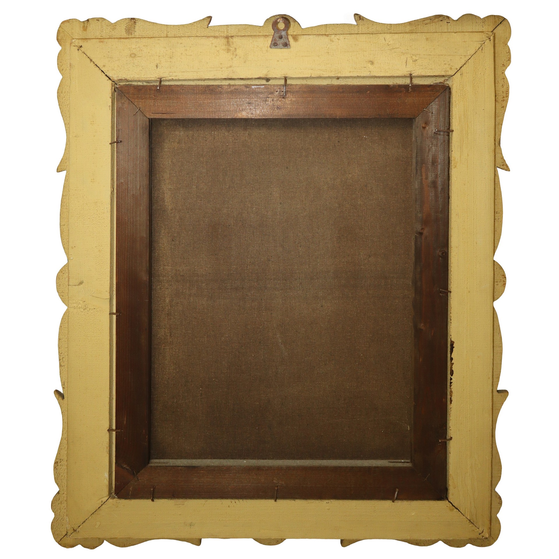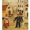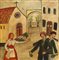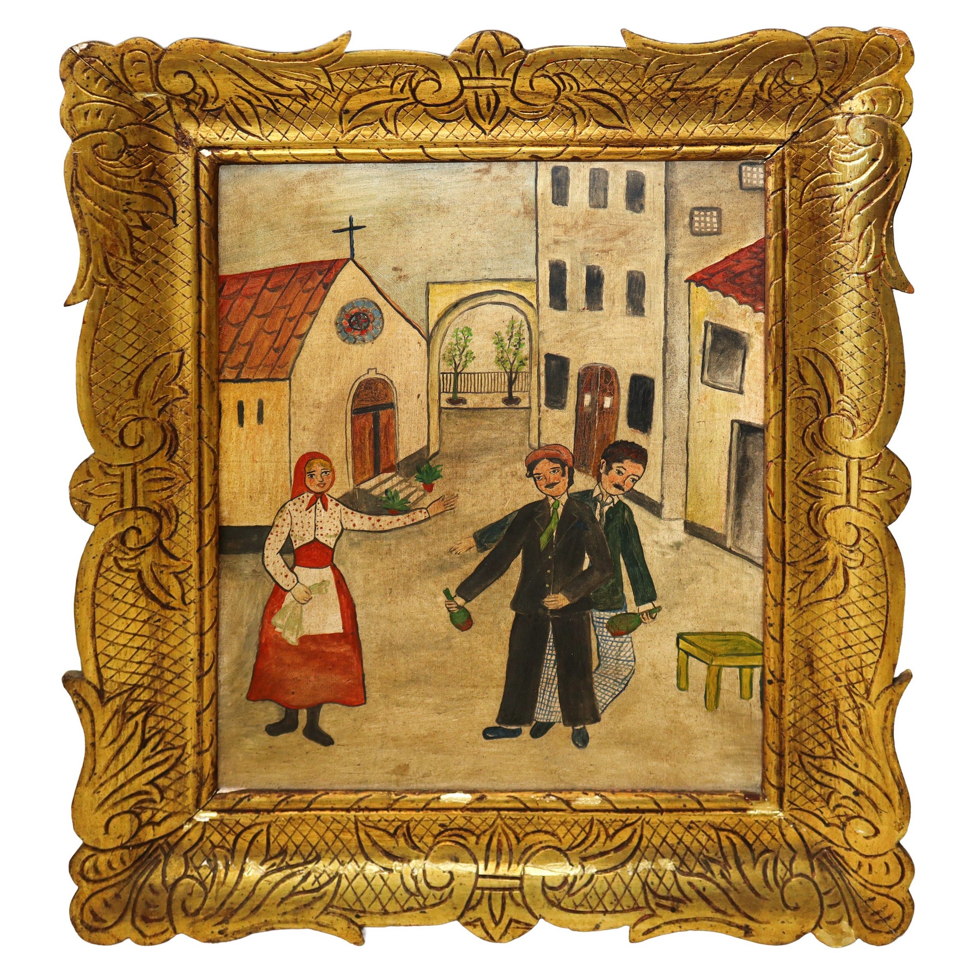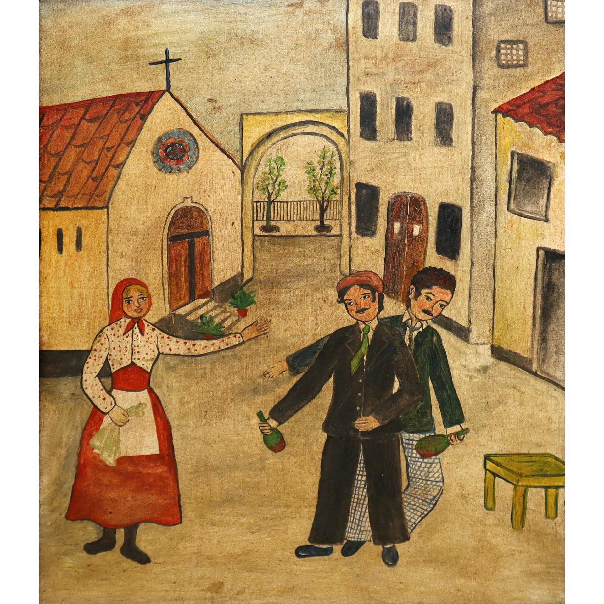 Gaetano Calogero (Catania - 2011) - Personaggi siciliani in una via h cm 50X40 in cornice h cm 67X57 olio su tela Dipinto Naif in cornice dorata a vassoio