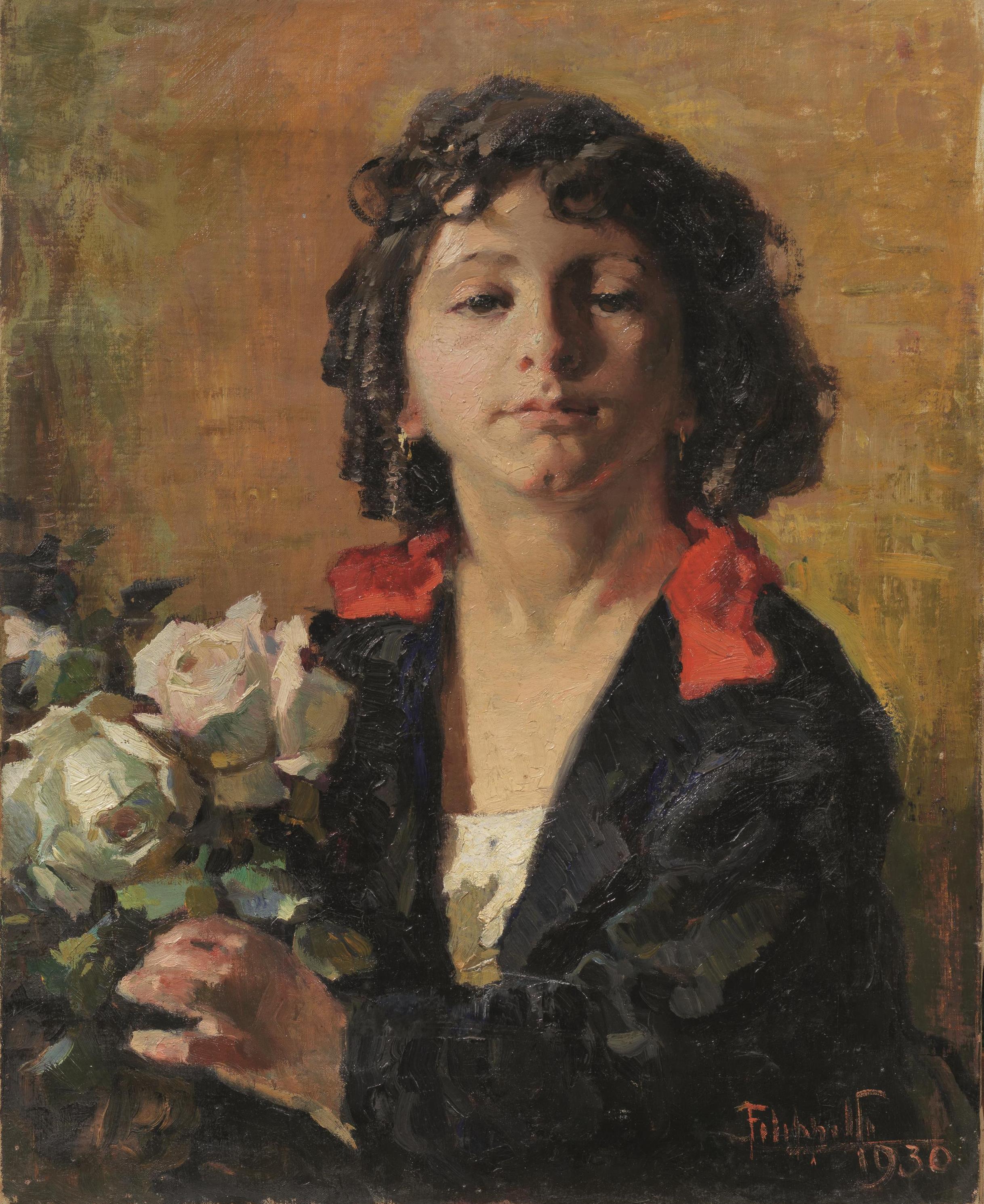 Cafiero Filippelli(Livorno 1889 - 1973)LA FIGLIA DEL PITTOREolio su tela, cm...
