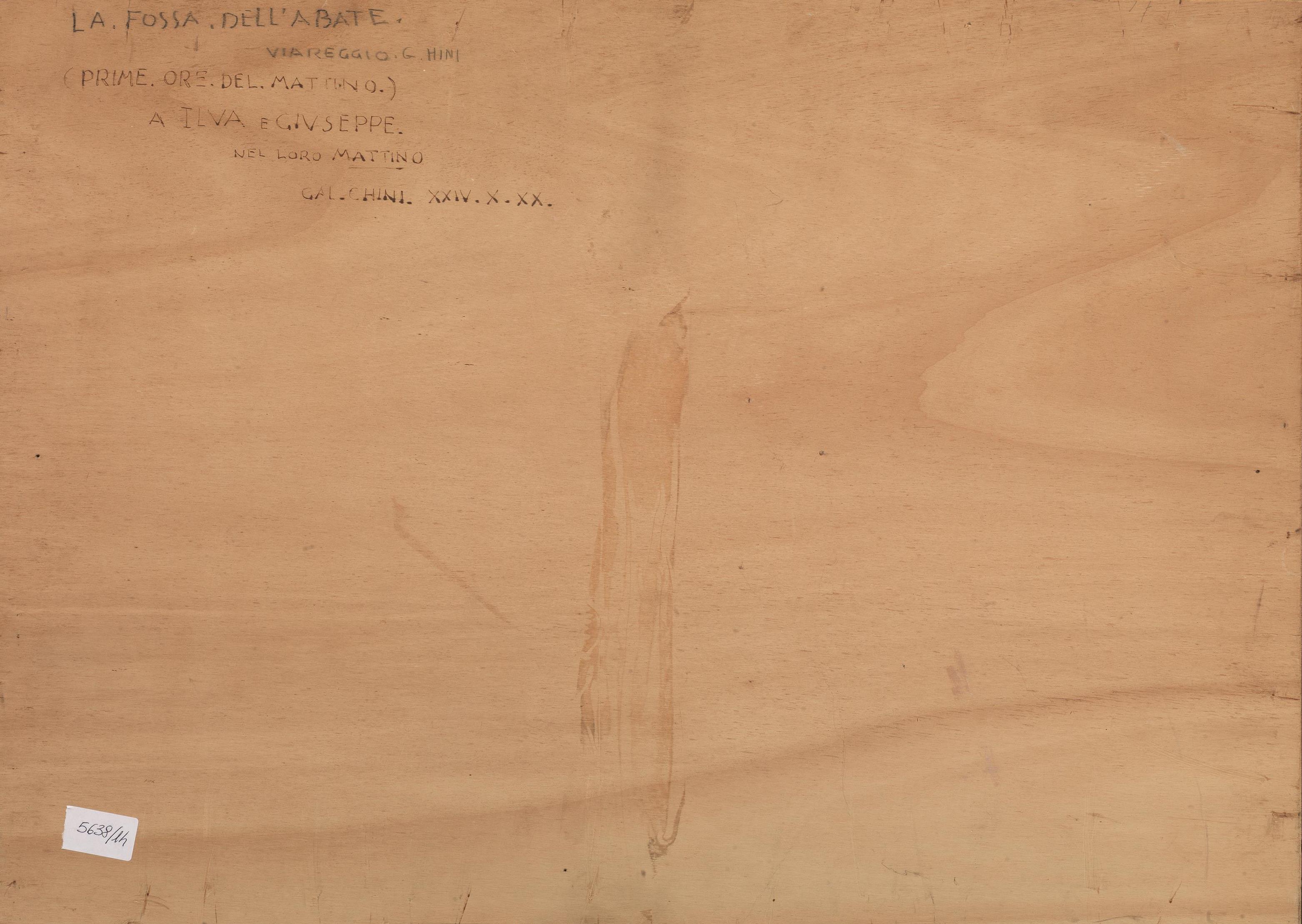 sul retro: firmato, datato, titolato e dedicato: "Prime ore del mattino. A Ilva e Giuseppe nel loro mattino. Gal. Chini XXXIV.X.XX."