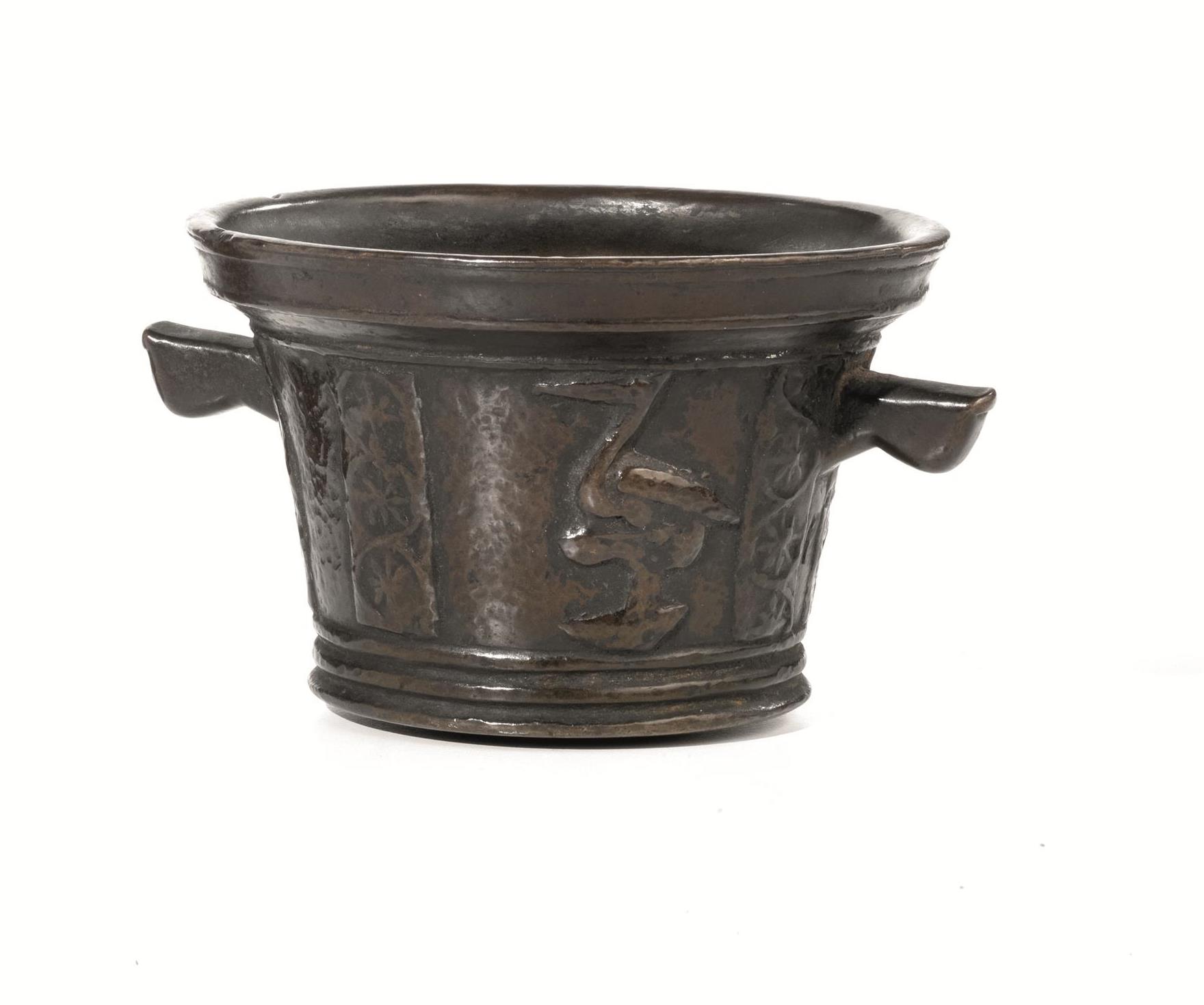 MORTAIO, ITALIA SETTENTRIONALE, INIZIO SECOLO XVIIin bronzo patinato, corpo...