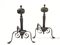 COPPIA DI ALARI, ITALIA CENTRALE, FINE SECOLO XVII, in ferro battuto con pomelli in bronzo. Struttura lineare poggiante su due piedi sagomati a voluta, dai quali si diparte l'elemento centrale decorato da un bel pomello a sfera schiacciata scandito da profonde baccellature e sormontato da presa quadrangolare con testine incise agli angoli, cm 53x56x36