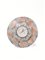 in maiolica decorata in policromia con arancio, blu, e bruno di manganese nei toni del nero-marrone su smalto bianco crema crettato, cavetto profondo e larga tesa piana con orlo arrotondato. Il decoro vede, al centro del cavetto, un cartiglio bianco centrato dalla scritta a caratteri capitali dipinta in blu “DIIANA:B” facilmente interpretabile come scritta amatoria Diana Bella. Un motivo a foglie blu, su fondo arancio sfumato di giallo, riempie la parte restante del cavetto. Il tondo che racchiude il personaggio è delimitato da un motivo decorativo a cordonatura, cui si sovrappone una fascia a punte, nella quale sono inscritti piccoli triangoli blu, contornata da semisfere a risparmio con centro color arancio, disegnate di blu. Sulla tesa un motivo a fasce concentriche decorate con sottili greche, scaglie centrate da fioretti stilizzati e cordonature completa il decoro. Il retro del piatto è interessato da un motivo a “petal back” associati a monogramma “A” paraffato. Il piatto appartiene dunque al gruppo di piatti pubblicati da Bernard Rackham nel 1915 e attribuiti botteghe di Deruta di cui gli studi più recenti hanno ormai chiarito le tipologie e la cronologia. Un confronto assai prossimo è costituito da un piatto del Victoria & Albert Museum, con cartiglio “Milina Bella”, che presenta caratteristiche decorative molto simili, ma più semplificate. Si veda ad esempio l’uso della fascia dentellata a decoro del medaglione centrale e le scelte cromatiche e decorative della tesa, alt. cm 4,5, diam. cm 22.