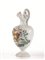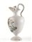 in maiolica decorata in policromia con giallo e azzurro, corpo ovoidale con alto collo cilindrico che termina nell’imboccatura a becco, affiancata da due alette arricciate verso l’alto, poggiante su un piccolo piede slanciato (ricostruito) a base arrotondata. Dall’orlo si diparte un’ansa, ad alto profilo a voluta, che termina sul corpo saldandosi a un mascherone in rilievo. La forma si attestò alla metà del Cinquecento con alcune varianti, e fu descritta dal Piccolpasso come bocale antico dalla bocca a lepore. Molto presente a Faenza in esemplari di scavo, era spesso decorato con motivi araldici. Il versatoio faceva parte dei servizi lavamani in associazione con grandi bacili umbonati e pertanto costituiva un elemento importante nelle commissioni delle famiglie nobiliari. Il nostro esemplare trova confronti sia negli esemplari esposti al Museo Internazionale della Ceramica di Faenza, sia in esemplari pubblicati. Lo stemma partito si riferisce all’alleanza di due famiglie fiorentine: Strozzi e Spada. Tuttavia alcuni errori di realizzazione nell’impresa araldica, peraltro comuni nelle maioliche antiche, ci fanno riflettere sulla corretta interpretazione dello stemma stesso che, data la qualità, meriterebbe una ben più approfondita indagine: lo stemma Strozzi è qui dipinto con le lune calanti e non crescenti, mentre lo stemma Spada è sormontato da un quarto con croce rossa su fondo bianco anziché dai consueti tre gigli su fondo blu. Ciononostante la datazione di quest’opera s’inserisce, per caratteristiche morfologiche e per stile pittorico, nel periodo produttivo dell’ultimo quarto del secolo XVI e dei primi anni del secolo XVII. La qualità pittorica nella realizzazione dei putti portastemma avvicinano, a nostro parere, l’esemplare alla mano del pittore che ha realizzato il versatoio con corpo baccellato delle Civiche Raccolte del Castello Sforzesco di Milano (Ravanelli Guidotti 1996 p. 476 n. fig 133 c.), alt cm 35, piede ricostruito.