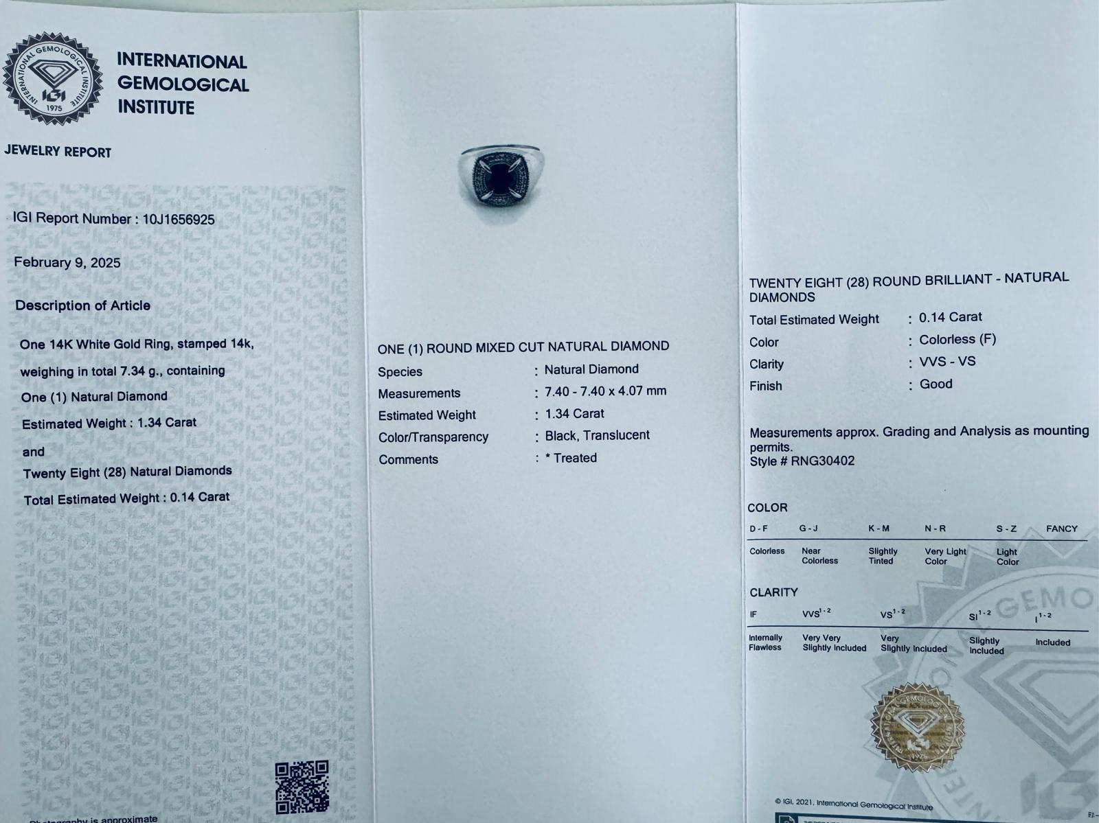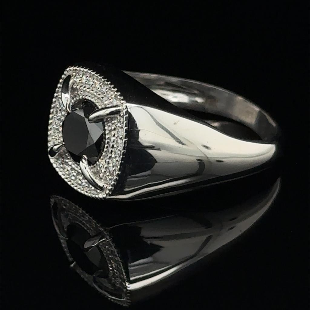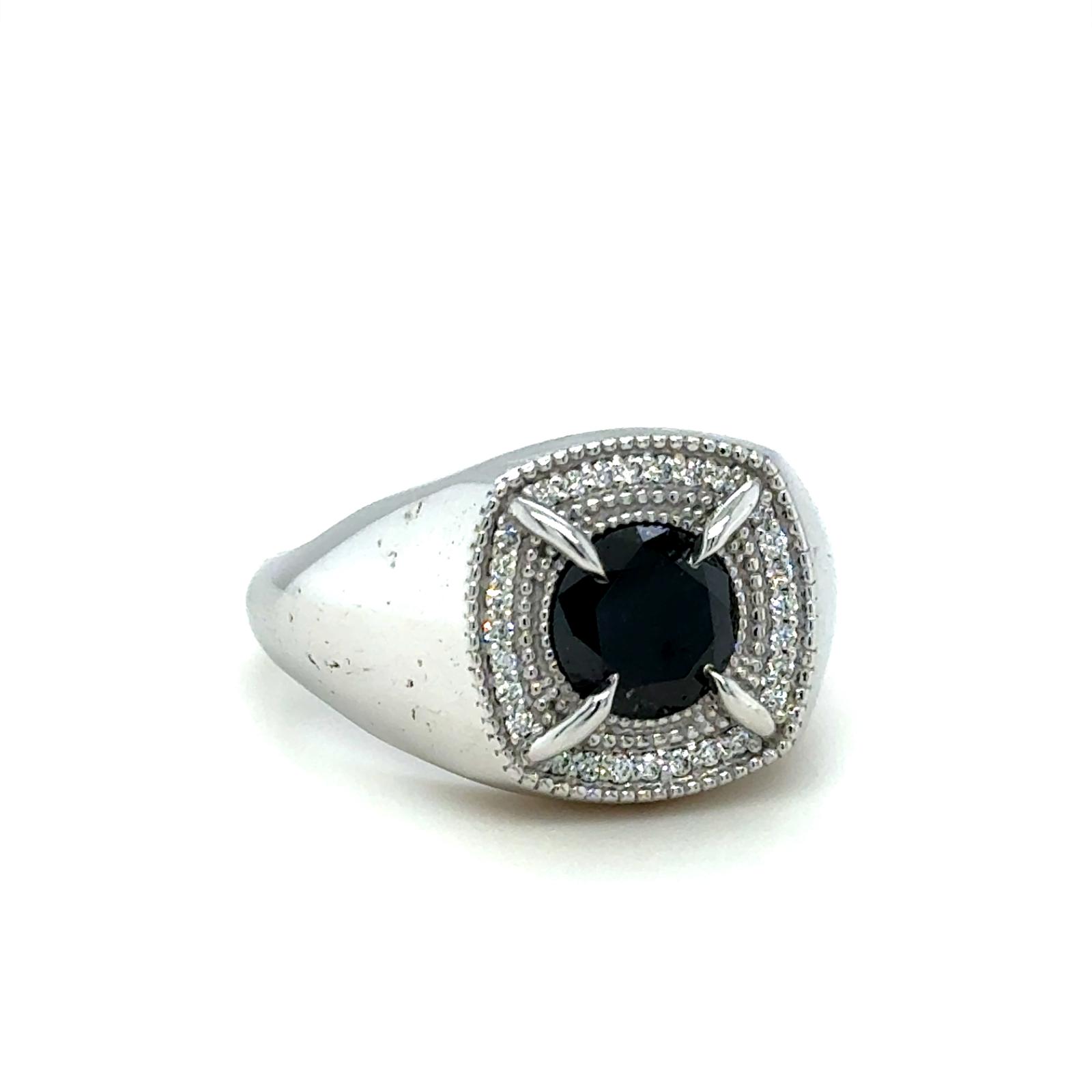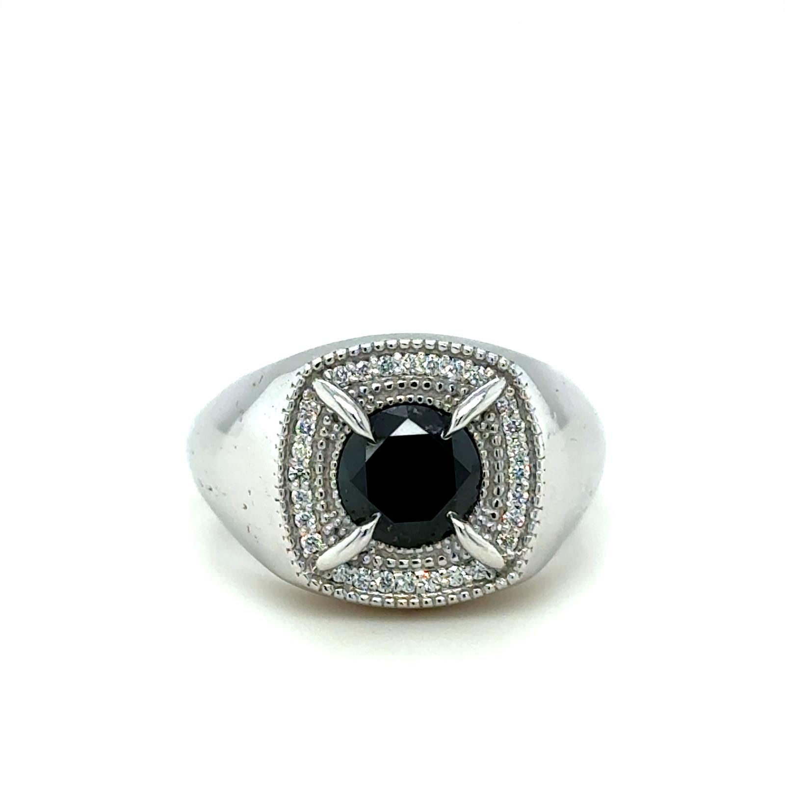 ANELLO IN ORO BIANCO 14K 7,34 GR CON DIAMANTE NERO 1,34 CT E BRILLANTI PER 0,14 CT COLORE F PUREZZA VVS – TAGLIA 10,5 – CERTIFICATO IGI – RNG30402