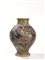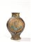 in maiolica policroma a fondo blu, di forma ovoidale con collo allungato ed orlo piatto, la parte centrale decorata a trofei, cartigli con iscrizione SPQP e riccioli graffiti, al centro medaglione ovale con cornice a volute entro cui è raffigurato San Lorenzo Martire con paesaggio sullo sfondo; le fasce inferiori rispettivamente decorate a foglie d’acanto entro riserve a mandorla e motivo a nastri intrecciati, Il collo decorato da due fasce a tralci di foglie, alt. cm 34, vaso frammentato e ricomposto, sbeccatura all’orlo