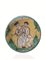 Maiolica decorata in giallo, giallo arancio, manganese nei toni del marrone e del nero, verde azzurro, forma svasata con orlo arrotondato poggiante su un piede appena rilevato. Il centro del cavetto è abitato da una coppia di giovani circondati da elementi vegetali stilizzati. Si tratta di una tipica scenetta di genere che riscontra un certo successo nelle raffigurazioni delle botteghe montelupine, alt. cm 6, diam. cm 31